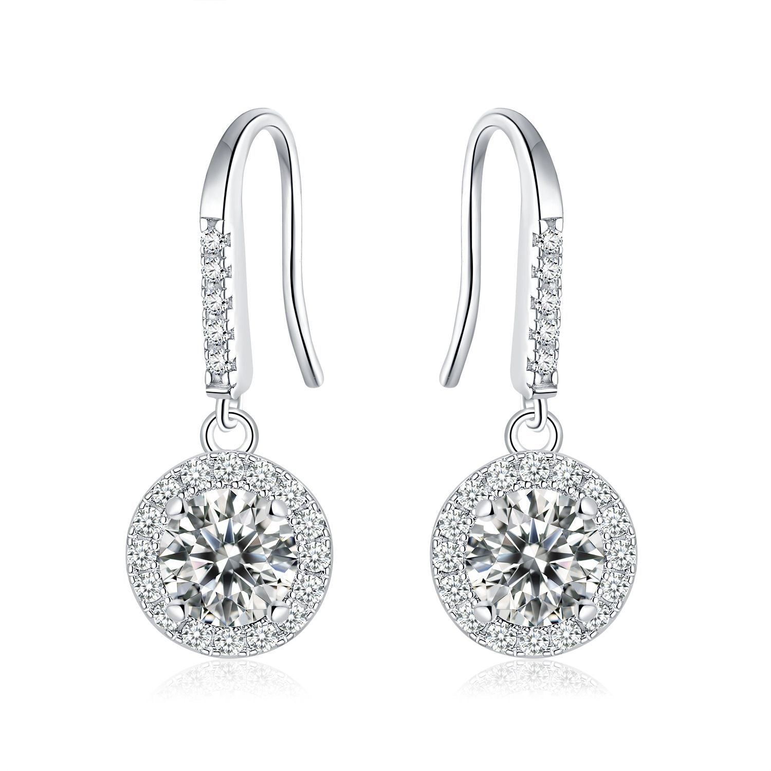 "FE-0022 1CT Round Brilliant Cut Moissanite Earrings/ 925 Sterling Silver/ D Color Ideal Cut/ VVS1 Clarity/Best Anniversary Gift/ Suits Every Occasion"