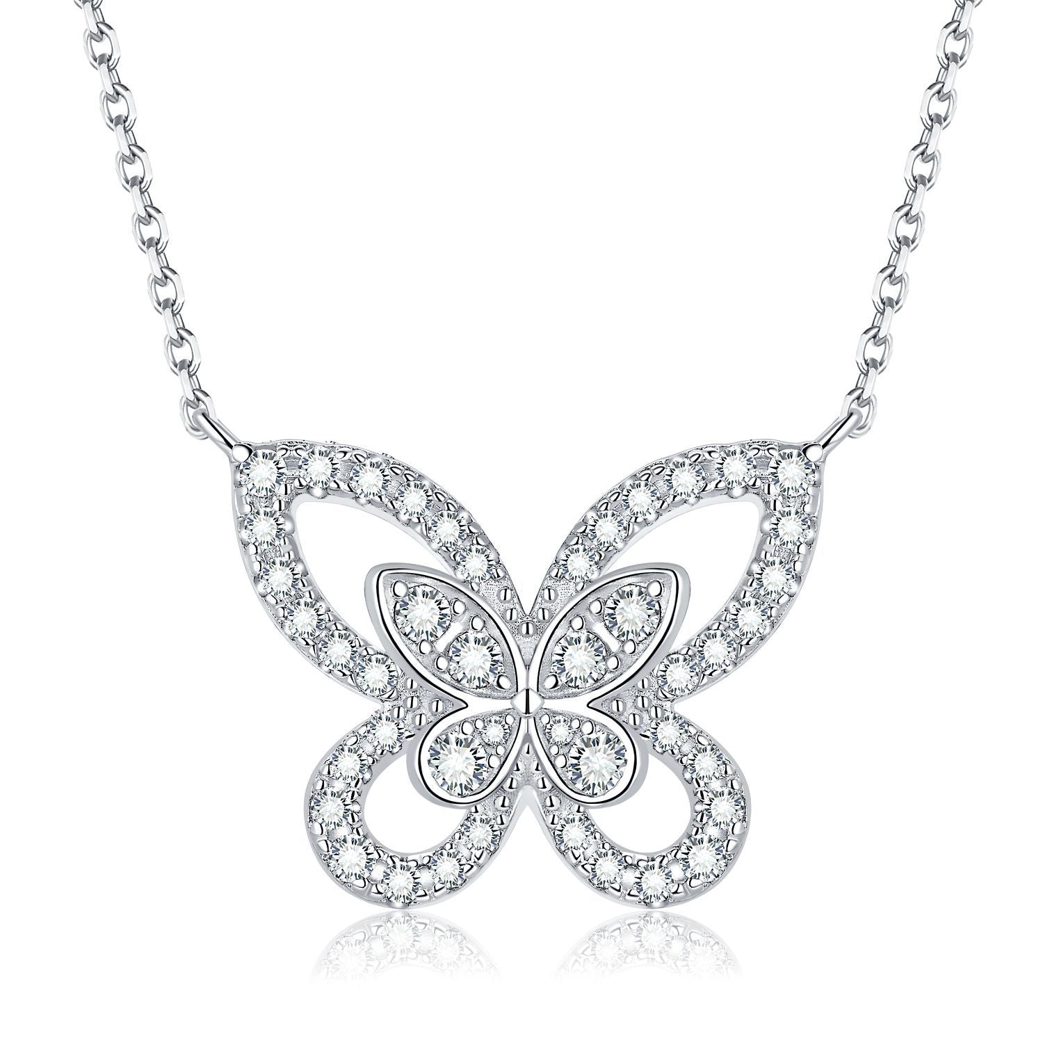 "FN-0031 Round Brilliant Cut Butterfly Moissanite Necklace/ 925 Sterling Silver/ D Color Ideal Cut/ VVS1 Clarity/Best Anniversary Gift/ Suits Every Occasion"