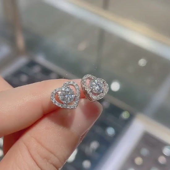 "FE-0003 0.5CT Round Brilliant Cut Heart Moissanite Stud Earrings/ 925 Sterling Silver/ D Color Ideal Cut/ VVS1 Clarity/Best Anniversary Gift/ Suits Every Occasion"
