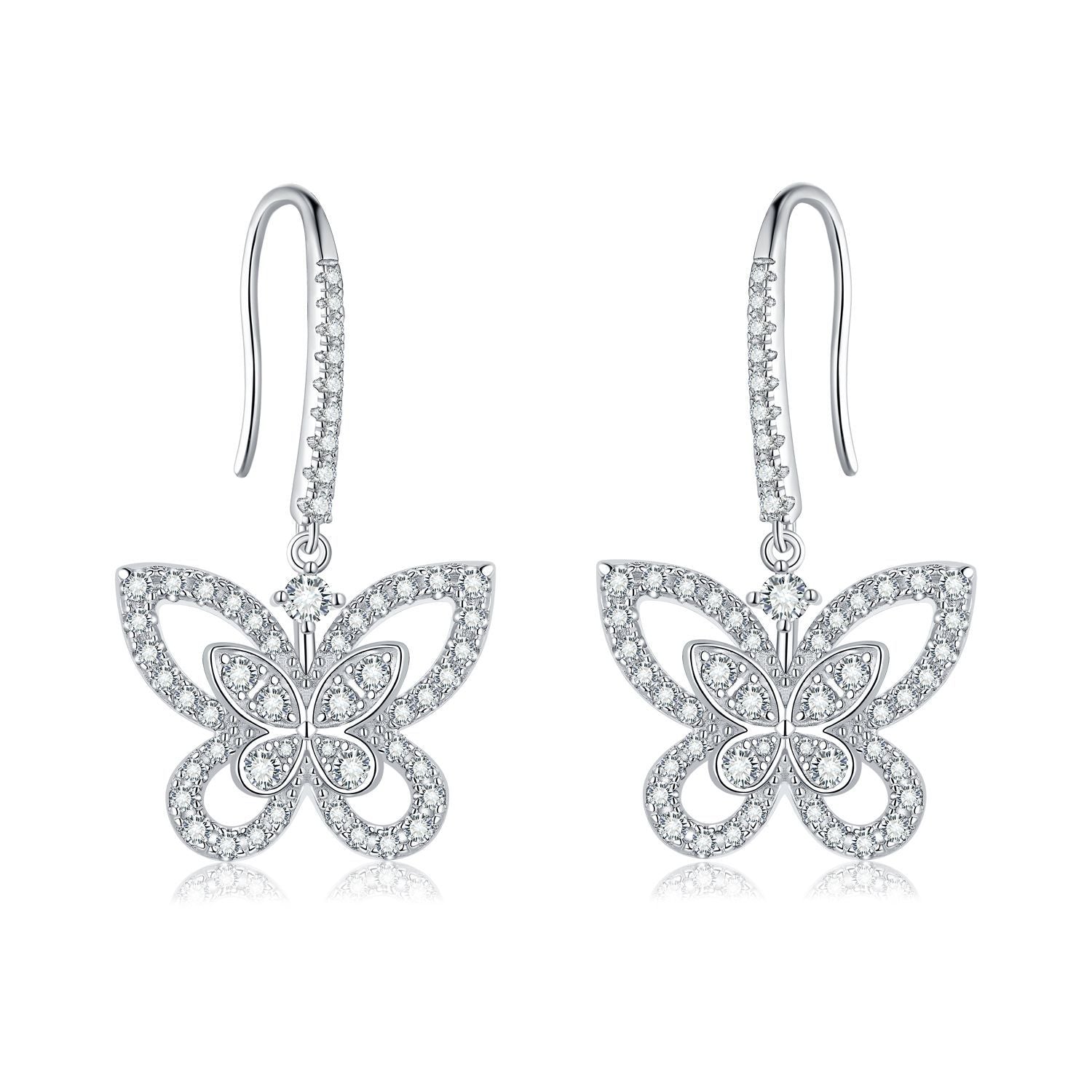 "FE-0049 Butterfly Moissanite Dangle Earrings/ 925 Sterling Silver/ D Color Ideal Cut/ VVS1 Clarity/Best Anniversary Gift/ Suits Every Occasion"