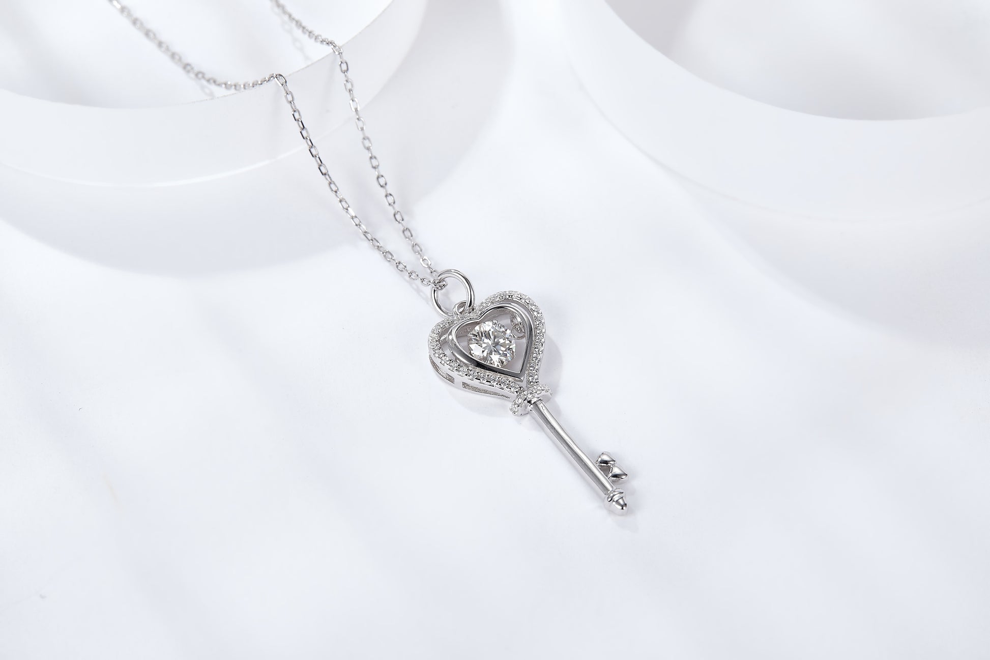"FN-0036 1 CT Heart Key Moissanite Pendant with Certificate/925 Sterling Silver/D Color Ideal Cut/ VVS1 Clarity/ 21cm-50cm/ Best Anniversary Gift/ Suits Every Occasion "
