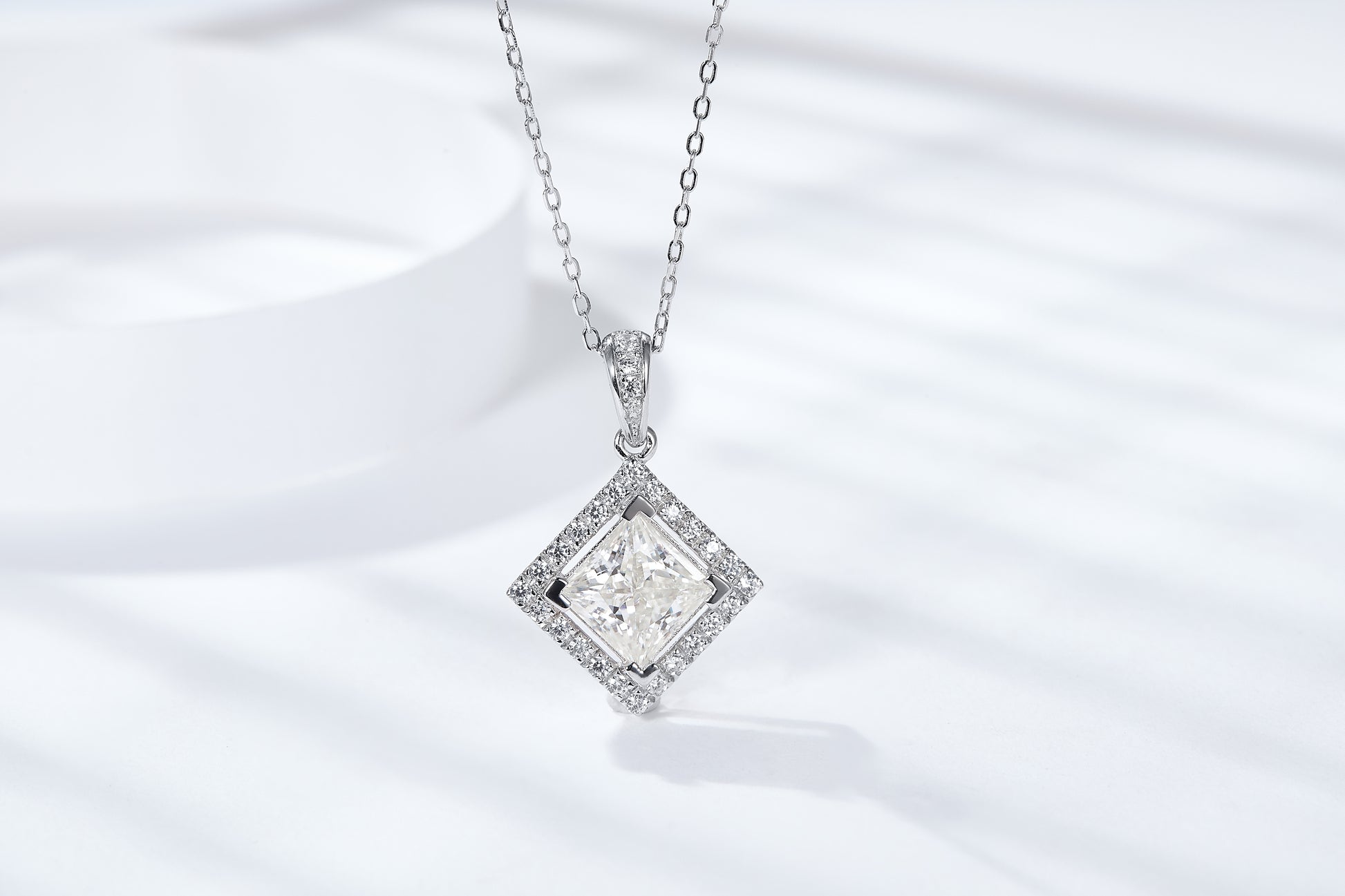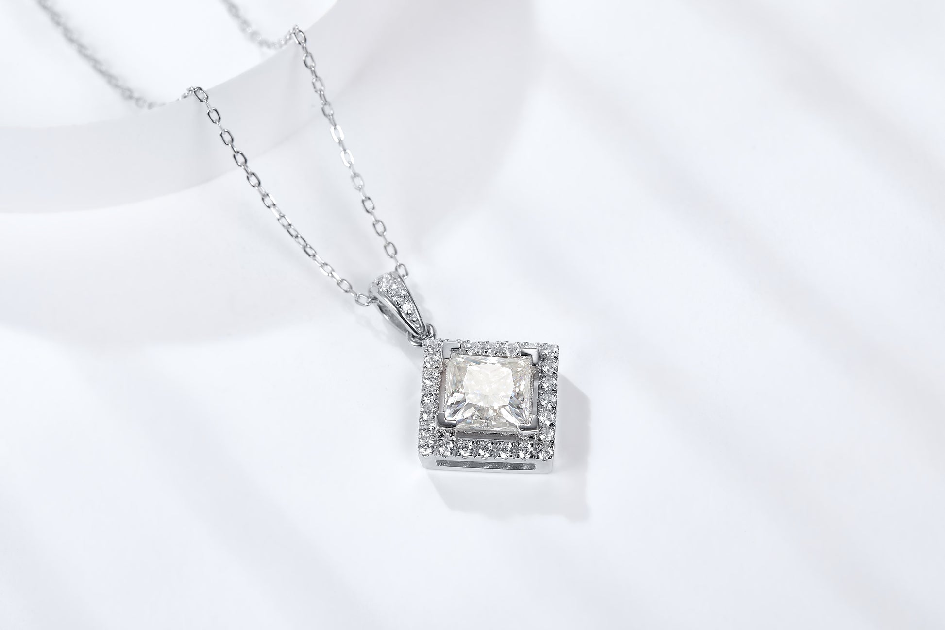 "FN-0037 2 CT Square Modified Moissanite Necklace with Certificate/925 Sterling Silver/D Color Ideal Cut/ VVS1 Clarity/ 21cm-50cm/ Best Anniversary Gift/ Suits Every Occasion "