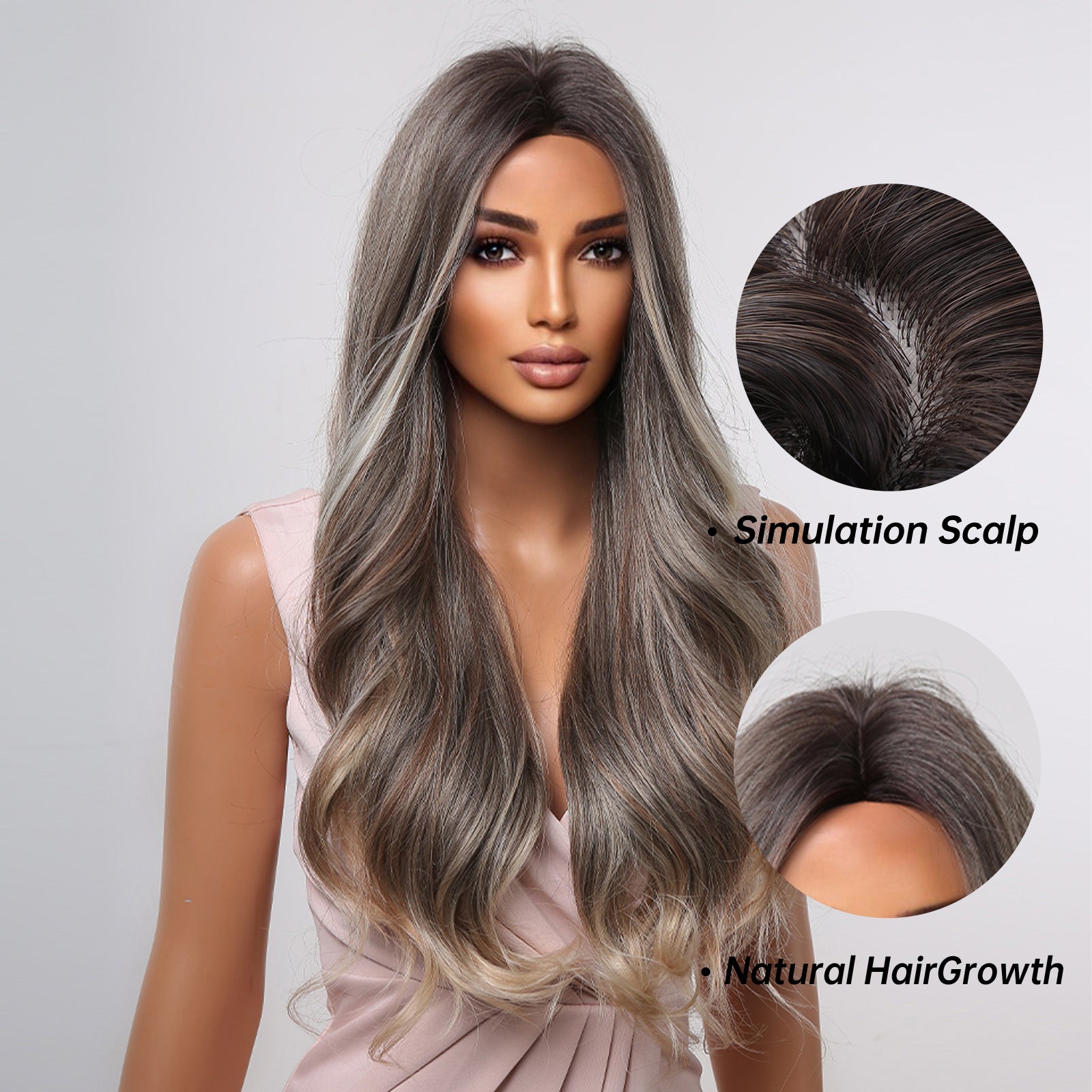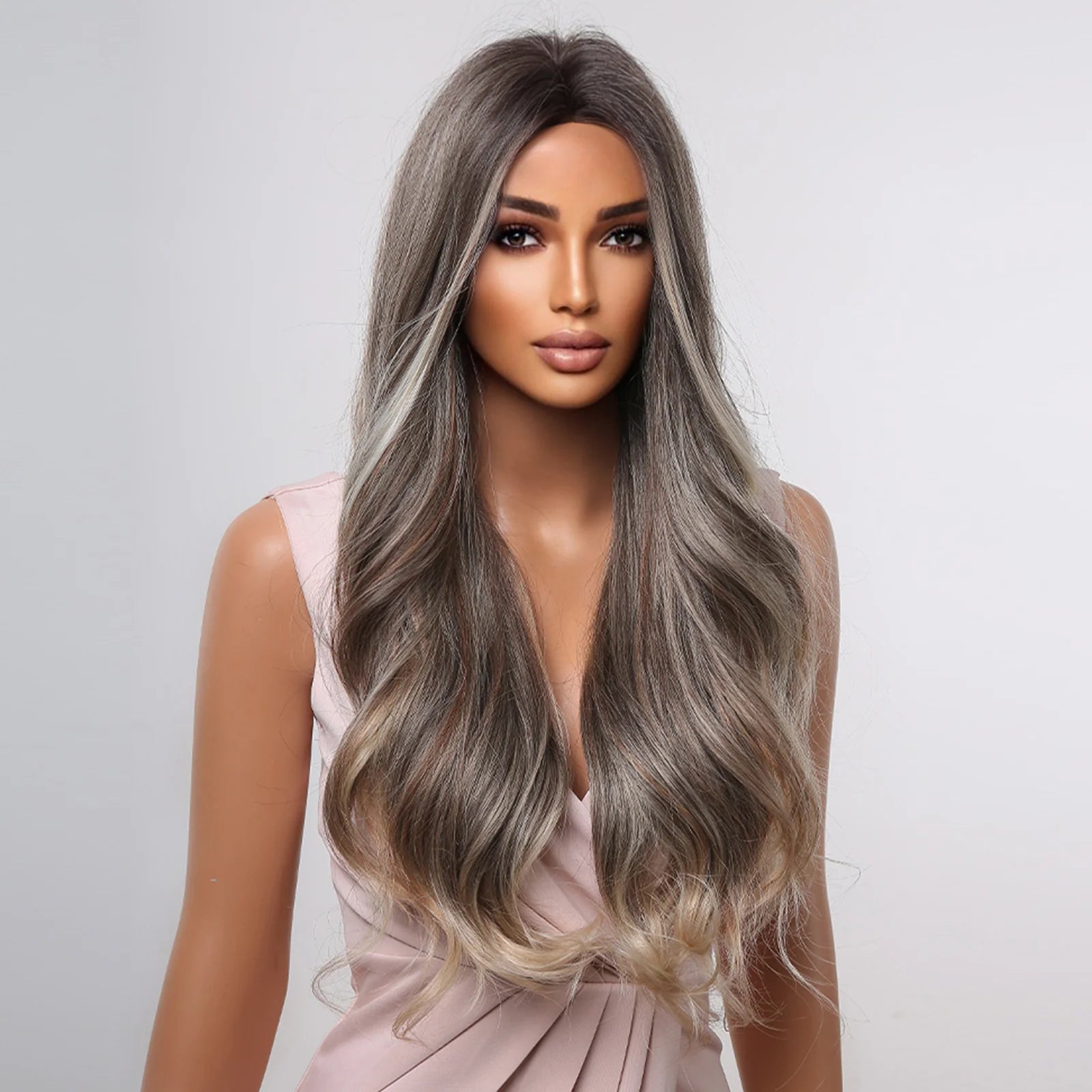 【Fashion Wig | Wavy| Black Gray | 24inch | LC2008-3】