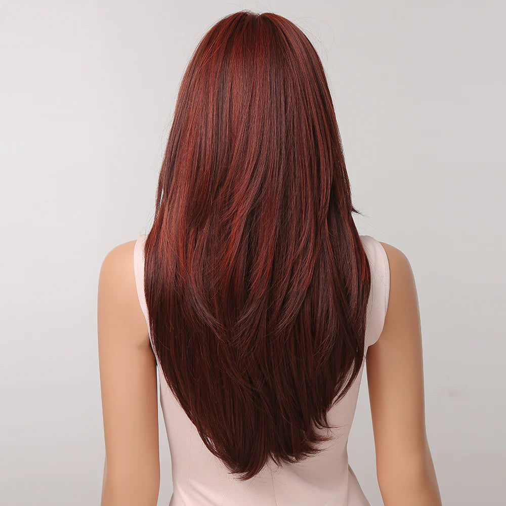 LC2068-3 22 Inch-long red straight wigs with bangs wigs for women