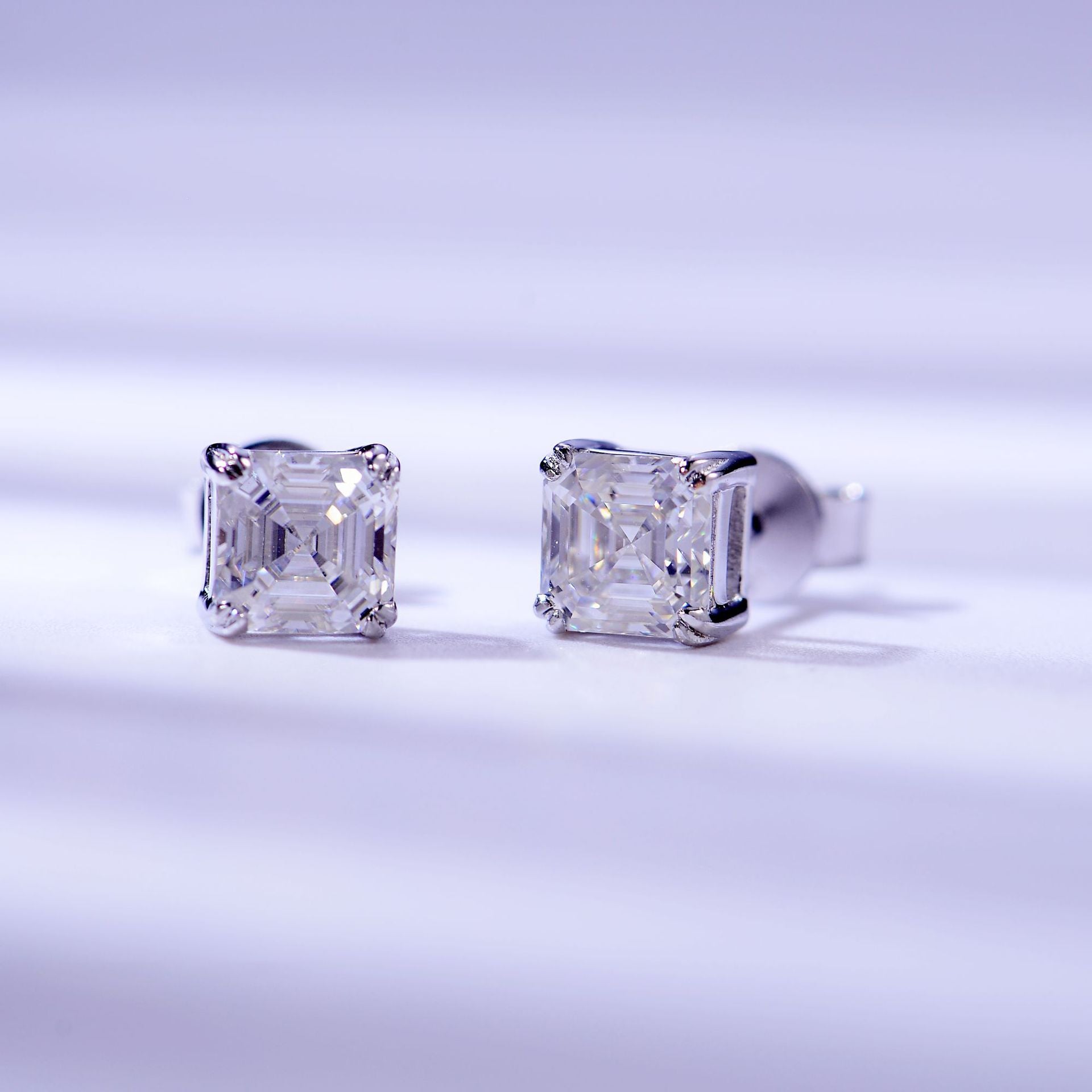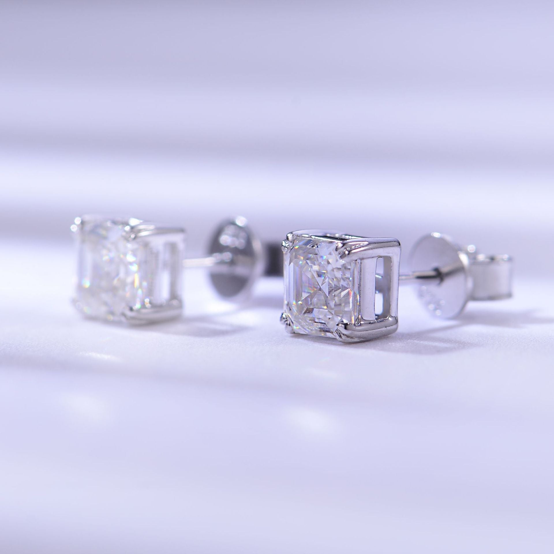 "FE-0034 2CT Square Modified Moissanite Stud Earrings/ 925 Sterling Silver/ D Color Ideal Cut/ VVS1 Clarity/Best Anniversary Gift/ Suits Every Occasion"