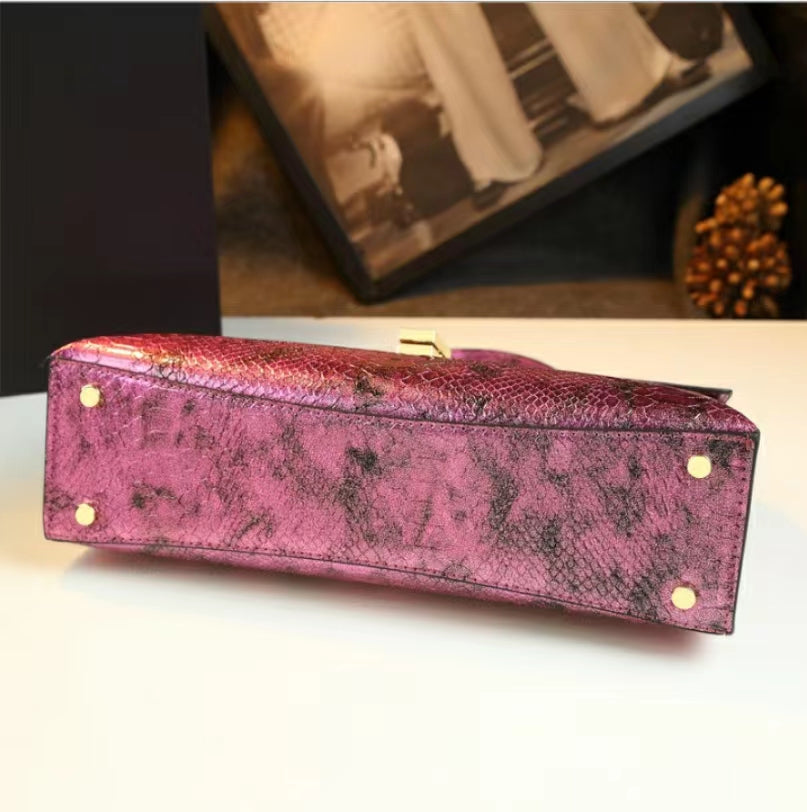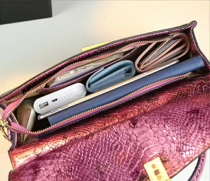 WB-0025/ Crocodile Embossed Leather Laser Crossbody Bag