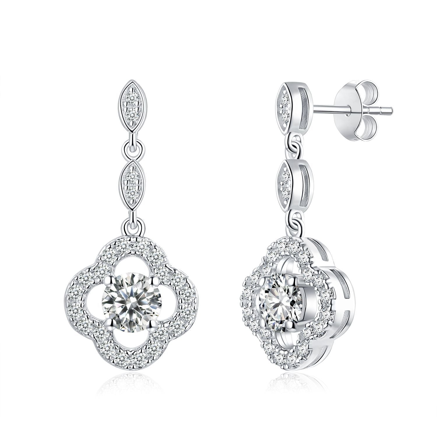 "FE-0017 5.2mm Clover-shaped Moissanite Dangle Earrings"