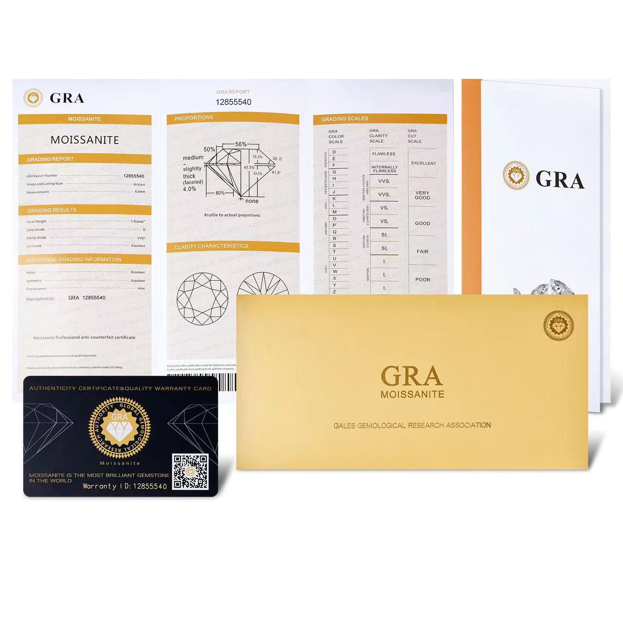 The moissanite stones we use are of the highest grade color and clarity - D (pure white) VVS1. Moissanite is a gemstone born from the stars, and lab grown nowadays given its extremely rare natural presence - which compares closely to diamonds in terms of look, hardness and refractive index.