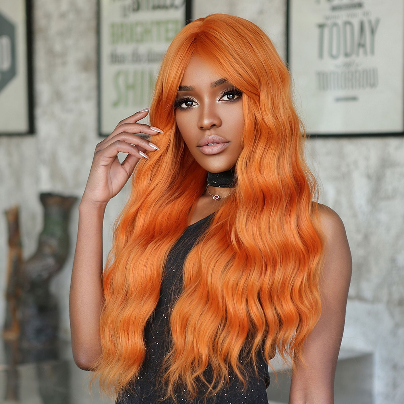 WL1115-2 26 Inch orange curly wigs with bangs wigs for Women