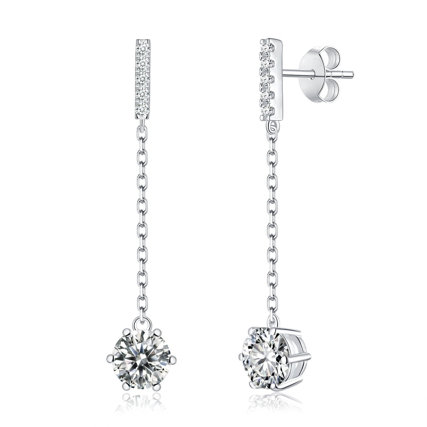 "FE-0012 5.2mm Round Brilliant Cut Moissanite Dangle Earrings/ 925 Sterling Silver/ D Color Ideal Cut/ VVS3 Clarity/Best Anniversary Gift/ Suits Every Occasion "