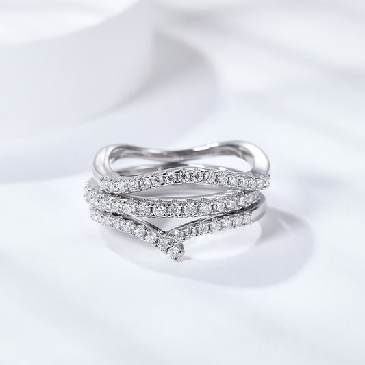 "ER-0022 Round Brilliant Cut V-shaped Half Moissanite Eternity Band/ 925 Sterling Silver/ D Color Ideal Cut/ VVS1 Clarity/Best Anniversary Gift/ Suits Every Occasion"