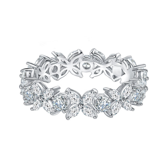 "ER-0013 Marquise and Round Half Moissanite Eternity Band/ 925 Sterling Silver/ D Color Ideal Cut/ VVS1 Clarity/Best Anniversary Gift/ Suits Every Occasion "